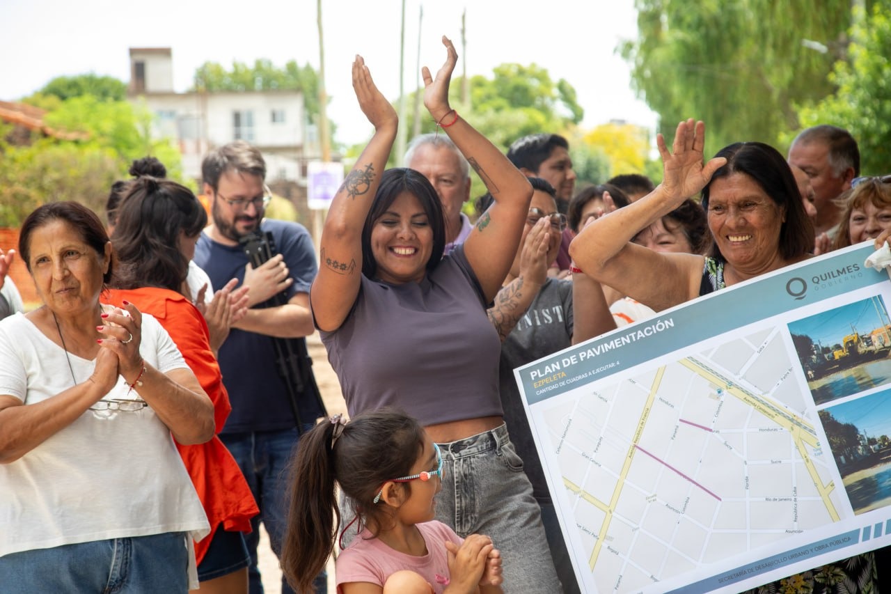 “Este tipo de obras son las que nos llenan de alegría y de responsabilidad, porque muchos decían que las esperan desde hace más de 40 o 50 años, y pensaban que nunca les iba a llegar el pavimento a la puerta de casa. Esto no es solo el hormigón, es la posibilidad de dignificar a las familias frentistas y es el objetivo principal de nuestra gestión, poder llegar a cada rincón de nuestra ciudad para llevar no solo pavimentos, sino dignidad, posibilidades, igualdad de oportunidades en cada uno de los territorios. Así nos lo pidió hace 6 años Mayra y lo venimos concretando”, sostuvo Eva, acompañada por la secretaria de Desarrollo Urbano y Obra Pública, Cecilia Soler, y el subsecretario de Obras e Infraestructura, Ramiro Beltrani.