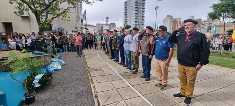 Se realizó el acto por el Día de los Veteranos y de los Caídos en la Guerra de Malvinas, frente al monumento ubicado en la Plaza Adolfo Alsina.