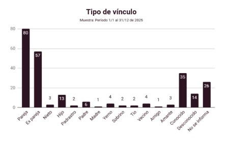 El informe detalla que el lugar físico más inseguro para las mujeres continúa siendo su propio entorno: el 60% de los asesinatos ocurrieron en el domicilio de la víctima o en la vivienda compartida con el agresor. En cuanto al vínculo, se determinó la existencia de una relación preexistente entre la víctima y el victimario en el 84% de los casos, siendo mayoritariamente parejas o exparejas. Solo el 5,5% de los hechos fueron cometidos por desconocidos.