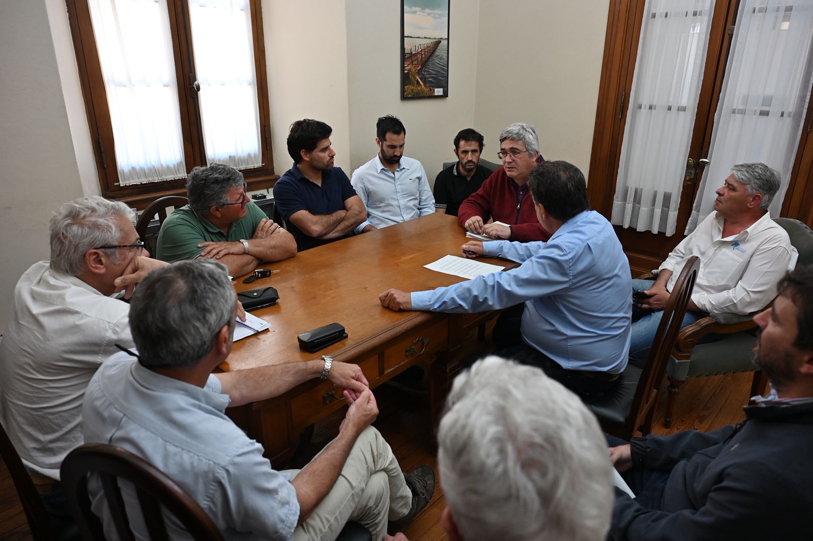 Luego de la recorrida por Bragado, el ministro se trasladó a General Viamonte, donde mantuvo un encuentro con el intendente Franco Flexas, funcionarios del municipio y representantes de la Asociación Rural local. Allí también anunció una asistencia económica extraordinaria para el mantenimiento de los caminos rurales.